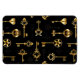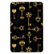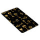 Patrón incomparable de llaves antiguas, doradas y de silueta sobre fondo negro.