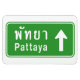 Funny Pattaya, Tailandia frente a un cartel bilingüe de la autopista tailandesa escrito en guiones de tailandés e inglés. Puede cambiar el tamaño y personalizar del signo. Nuestra tienda tiene una gran selección de camisetas, gorras, tazas y mucho más, todo con diseños inspirados en el dialecto de Isaan y el idioma tailandés.