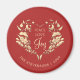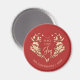 Imán festivo de Navidades personalizados con un rico fondo rojo con una corona dorada floral y las palabras Paz, Amor, Alegría. Personalizado con el nombre y el año de su familia, este imán de vacaciones hace un Navidad perfecto para mantenerse en paz, repoblar a los matones o para hacer un favor de fiesta. Una manera elegante de decorar refrigeradores, placas magnéticas o espacios de oficina, coordinando al mismo tiempo con tarjetas, etiquetas, etiquetas de regalo y papelería de vacaciones.