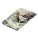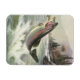 Diseño deportivo de ilustracion de época con pescadores en un río. Una trucha arco iris chapotea y salta del agua.