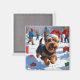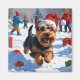 Un alegre Scottish Terrier recorre felizmente la nevada escena del invierno, llevando un gorra festivo de Navidades rojos. Este encantador diseño resalta la silueta distintiva de la raza, el abrigo y la personalidad espiritual, al tiempo que captura el calor y la alegría de la temporada de vacaciones. Un momento de invierno delicioso lleno de alegría festiva.