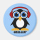 Pingüino lindo y fresco tuxedo chillin con audífonos rojos escuchando camisetas musicales y regalos para los amantes del pingüino. Ropa de pingüino única, original y divertida y regalos para los amantes de la música y para los que les gusta relajarse.