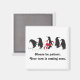 Un grupo de pingüinos espera pacientemente en fila para sumergirse en el océano. Una de ellas tiene un tubo interior rojo y blanco y una bola de playa. Este ilustracion animal humorístico es un imán único para cualquiera a quien le gusten los diseños lindos y caprichosos.