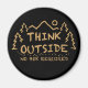 Este diseño dice "Think Outside, No Box Required" con una cordillera y árboles en el fondo. ¡Un diseño divertido para los amantes del exterior!