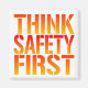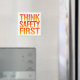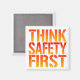 Este imán de "Pensar primero en la seguridad" es perfecto para cualquier empresa que promueva la seguridad o lleve a cabo una campaña de seguridad en el trabajo.