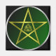 Un pentáculo de oro/pentagrama sobre un fondo verde con una triqueta en el corazón del pentáculo. Encantador. El pentáculo y el triquetra han sido durante mucho tiempo símbolos del sistema de creencias Wiccan y del neopaganismo.