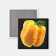 Este imán tiene una pimienta amarilla, con un tallo verde. En la obra original, la pimienta tiene una sombra marrón dorada zigzag y luces amarillas brillantes alrededor de las líneas de zigzag en la base del tallo. El fondo es negro, pero puede cambiarse a cualquier color que desee. Esta pimienta está lista para añadir algo de pizzería a cualquier cocina.