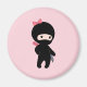 La personalizado guapa ninja chica está vestida de negro pero con un arco rosado encima de su máscara de cabeza. La tradicional espada japonesa katana se puede ver atada sobre su hombro, su mango también color rosa.
