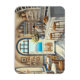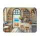 Perfecto regalo para los amantes del viaje y del café. El cuadro acuático desprende el encanto sereno de una pequeña cafetería de Santorini. Las paredes encaladas con acentos azules reflejan la estética icónica de las Cícladas, mientras que las pequeñas mesas de madera con sillas de mimbre crean un ambiente acogedor. Cada mesa está decorada con un simple jarrón de flores frescas que le da un toque de elegancia. Un mostrador de piedra blanca contiene una cafetera tradicional griega y frascos de bollería, mientras que un barista vestido con una camisa de lino sirve café de una cafetera espresso de época. Las paredes están decoradas con pequeños cuadros enmarcados del mar Egeo y estanterías rústicas con vasos de cerámica y jarras de hierbas. La luz del sol se ilumina a través de las ventanas abovedadas, con motivos intrincados en el suelo de baldosas, y ofrece una vista del mar azul brillante que hay más allá. El cuadro presenta la esencia tranquila y pintoresca de un café Santorini.