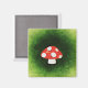 Un lindo ilustracion de un hongo rojo visto. El fondo es una textura verde acariciada, el color que recuerda a un bosque verde y exuberante donde se encuentran estos adorables hongos pequeños. La seta de toadstool es un símbolo mágico místico que puede ayudar a añadir brillo y misterio a tu hogar y tu vida.