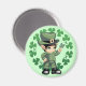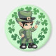 Este bonito diseño del Día de San Patricio presenta un pequeño leprechaun vestido de verde con un fondo de rocas de champú en círculo.