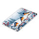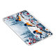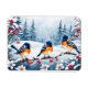 Tres pequeños pájaros encarnan una rama cubierta de nieve, rodeados de bayas rojas en este imán muy bonito y hermoso. ¡Pequeño y perfecto terco de medias!