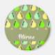 Añade tu nombre en estas peras coloridas sobre el diseño de patrones de fondo verde.