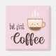 Pero el primer texto de café con una taza de café linda sobre rosa claro