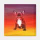Un lindo perro Bulldog francés sentado con un fondo colorido, una idea de regalo perfecta para alguien que ama esta raza de perro.