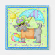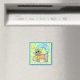 Disfrutarás de este imán de arte para perros. "Estoy listo para jugar" - ¿no? Este perro está listo para divertirse en la playa con una bola de playa y un paraguas. Con gafas de sol frescas, fucsia y chanclas turquesas, camiseta de playa naranja y un gorra de playa morado, está listo para irse, vestido con estilo. El fondo es verde, con estrellas moradas y un borde azul. El sol está afuera y brillando para un día perfecto y está listo para que lances la pelota. El texto de abajo dice "Estoy listo para jugar".