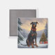 Imán Perro Doberman en Navidades de nieve