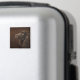 El diseño presenta un retrato fotográfico de un perro con el pelo castaño sobre un fondo marrón oscuro.