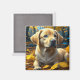 El cachorro lindo jugando en otoño amarillo deja imán.