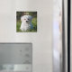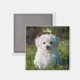 Imán de perro de cachorro blanco esponjoso y blanco maltés personalizado