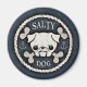 Emblema de cachorro de pug/bulldog y de pirata de huesos cruzados, en un borde de cuerda con anclas y letras de "Perro salado". Falsas grietas de edad angustiadas, camisetas, sudaderas, novedades, regalos.