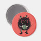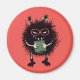 El imán del amante de los libros con un divertido ilustracion vectorial de una criatura maligna peluca con colas de caballo y anteojos sosteniendo un libro y sonriendo con sus dientes afilados.