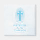 En una Primera Comunión Sagrada, un círculo rodea el centro de la cruz que representa al anfitrión. Los rayas están saliendo del centro, dando una sensación alegre en este azul de felicitaciones de la Primera Comunión, regalos, regalos y fiesta esenciales para un niño!