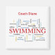 Ya sea hombre o mujer, su entrenador de natación apreciará este regalo de agradecimiento, recuerdo, regalo o fiesta esencial. Personaliza con su nombre. ¡Escritura roja en el centro con palabras asociadas con el deporte están nadando a su alrededor!