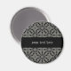 imán Guay con un patrón medieval de kaleidoscopio de flor gótica en color negro y piedra. Tanto el texto como la franja negra son personalizables. Para cambiar el tamaño de una fuente o cambiar de ella, haga clic en el botón "personalizar" y, a continuación, haga clic en el texto o en la banda para abrir sus opciones. Ideal para tu frigorífico o taquilla.