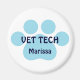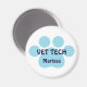 Este imán muestra una huella de pata azul y se puede personalizar con el texto de su elección.