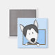 Este precioso imán Husky siberiano tiene al perro corneado personalizado escabulléndose la cabeza de un marco salpicado de polka azul claro, con sus garras colgando por el borde. ¡Qué adorable! Hace un gran regalo de amante de los perros.