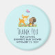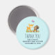 Un evento / fiesta gracias imán con un lindo ilustracion con un ciervo bebé y una pequeña ardilla sosteniendo una bellota y una mariposa volando sobre sus cabezas. Estas adorables criaturas de los bosques sobre el césped con algunos hongos extravagantes a sus pies.