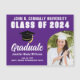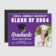 Este imán de foto de graduado senior personalizado moderno blanco y púrpura presenta su fotografía de graduación junto a la tipografía blanca elegante de su nombre universitario para la promoción de 2026. Personalice con su año de graduación debajo del texto manuscrito negro chic y la gorra de graduado negra para una tarjeta magnética de anuncio de graduación genial.