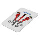 Funny herramienta de humor con tres monstruos franceses hambrientos persiguiendo tuercas y pernos.