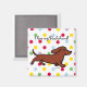 Arte de Perro delicioso y divertido creado por Naomi Ochiai de Japón. Un diseño personalizado de Dachshund para los amantes del perro que aman Dachshund!! Un adorable cachorro de Dachshund corre con ojos mordaces. ¡Puedes personalizar de texto y más! Colorido fondo de puntos polka.
