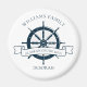 personalizado de moda imán de vacaciones de verano para un crucero de playa de reunion familiar en el océano con un volante de barco azul marino. Este diseño de temática náutica es perfecto para su viaje especial. Personaliza con tu apellido y año para una reunión familiar en el mar.