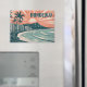 Texto Personalizado personalizado disponible. Honolulu, en la isla de Oahu, Hawaii, es uno de los destinos turísticos más famosos del Pacífico, conocido por la playa de Waikiki y el dramático cono volcánico Cabeza de Diamante. Este diseño presenta un estilo de ilustracion retro, inspirado en los clásicos afiches de viaje de mediados de siglo. La composición utiliza líneas audaces, simplificadas y detalles gráficos limpios para resaltar el horizonte de la ciudad, la línea costera curvada y las olas del Océano Pacífico bajo un cielo de puesta de sol radiante. En primer plano, las palmeras tropicales y la playa de arena se extienden hacia el agua, mientras que las olas se extienden a lo largo de la costa, lo que evoca el surf y el paisaje oceánico. El paisaje de Waikiki se encuentra frente a la silueta distintiva de Diamond Head, uno de los lugares más emblemáticos de Hawái y un símbolo de los viajes por la isla. La obra destaca un paisaje costero que equilibra el paisaje urbano con el paisaje natural. Este estilo captura el encanto nostálgico del arte de los afiches vintage mientras se celebra el atractivo eterno de las playas de Hawái, las islas tropicales y la cultura de las vacaciones. Con temas de viajes, turismo, sol y la costa del Pacífico, la escena transmite la energía de una huida del paraíso y el carácter de Honolulu como un emblemático punto de referencia para viajes estadounidenses.