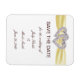 Este hermoso ahorrador imán de fecha es una manera elegante y duradera de anunciar su gran día. Personalice el imán cambiando el texto en los campos proporcionados. Puede cambiar el estilo de fuente, el tamaño y el color.
