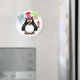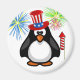 Patriotic Paddy 4 de julio Gorra Fireworks Magnet. Aquí está Paddy Penguin de nuevo, esta vez celebrando las vacaciones de verano. Tiene su blanco rojo y azul, estrellas y rayas, sombrero de punta y su cohete rojo. Arriba en el cielo, los fuegos artificiales arden, en rojo, azul, verde y amarillo. ¿Cómo se puede resistir a este pingüino lindo con la panza gruesa y los ojos grandes, divertido para los niños y los adultos por el refrigerador o el tablero de anuncios. Disponible en redondo o cuadrado, pero el redondeo se ajusta mejor a la imagen.