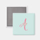 This pretty magnet features watercolor flowers in soft pink on a mint green background. You can personalize this monogram to make it your own.