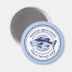 Personalizar este imán de la tienda de pesca familiar para una tienda de pescado y aparejos para uso de la tienda de marketing. Un fresco diseño de pescador periwinkle y azul marino con un bajo de boca abierta y tu texto o apellido personalizado.