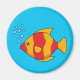 Pescado tropical personalizado naranja rojo. Está nadando en el océano azul mientras hace burbujas. Este bonito ilustracion kawaii es ideal para los amantes del mar y del acuario y para traer de vuelta recuerdos de felices vacaciones tropicales de verano.