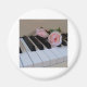 una imagen cercana de un teclado de piano con un par de rosas rosas rosas.