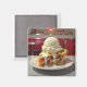 Magnate lindo con un ilustracion de tarta de manzana con helado de vainilla encima en una cena retro.