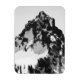 Fotografía en blanco y negro de un pico de montaña que forma parte de la cordillera Tatoosh en el estado de Washington. La fotografía fue creada en el Parque Nacional del Monte Rainier durante un verano. La montaña está cubierta de nieve. Hay árboles y piedras que sobresalen de ella, lo que crea sombras. Derechos reservados ©2023 Kimberly J Tilley. zazzle.com/store/developingnature