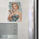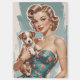 Entrar en el mundo del glamour vintage con este encantador ilustracion de un alfiler rubio, ¡acariciando un adorable cachorro marrón y blanco! Su verde azulado vestido, adornado con un delicado patrón floral, se empareja maravillosamente con su peinado retro, joyas de perlas brillantes y un fondo verde azulado texturizado. Esta pieza capta la dulzura y elegancia del arte clásico con un toque lúdico.