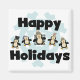 Camisetas, tazas, tarjetas, pegatinas, bolsas de té, imanes y otros Navidades ropa de vacaciones y artículos de regalo con cinco adorables pingüinos y texto que lee Felices Fiestas.
