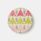 Pink & green abstract Christmas trees with snowflakes magnet. Perfect gift for Christmas or stocking stuffer.