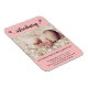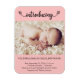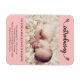 Simple anuncio de nacimiento de una niña rosa con "introducción" en un guión divertido con mariposas. Cambie la foto y la información a la de su recién nacido. Estos imanes son una forma divertida de anunciar al último miembro de su familia.