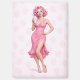 Add a splash of sweet retro charm to your fridge with this glamorous pink pin-up girl magnet. Featuring a vintage-inspired illustration of a stylish woman in a flowing pink dress holding a creamy milkshake, this design is set against a soft strawberry patterned background for a playful, feminine touch.